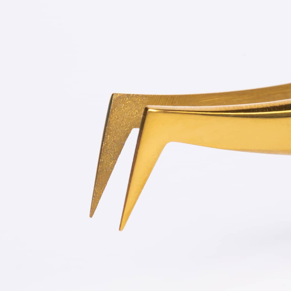 Dank der speziellen Diamantbeschichtung kann die Pinzette mehr Wimpern greifen als reguläre Volumenpinzetten.