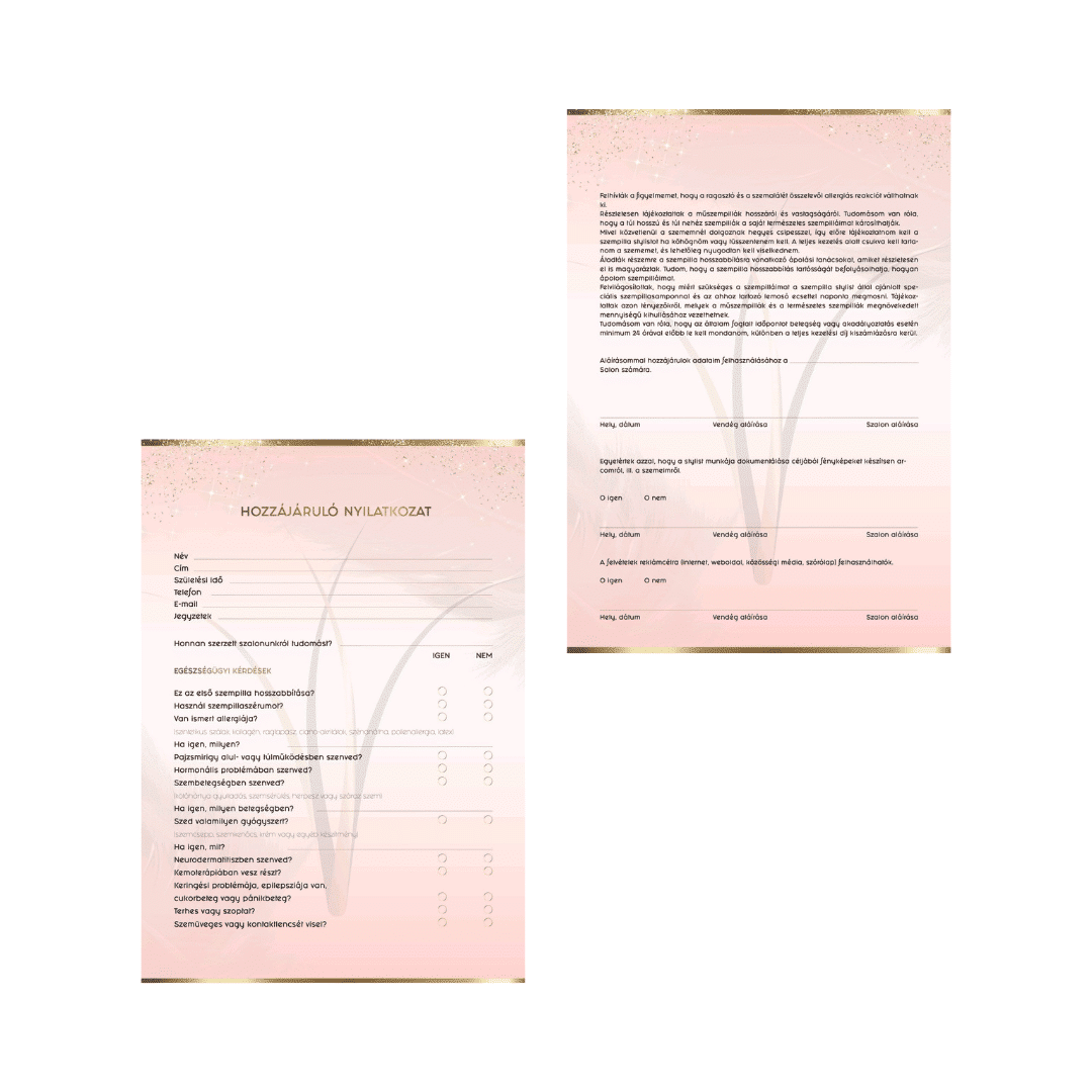 Hozzájáruló nyilatkozat szempillahosszabbításhoz – 50 lap / magyarul